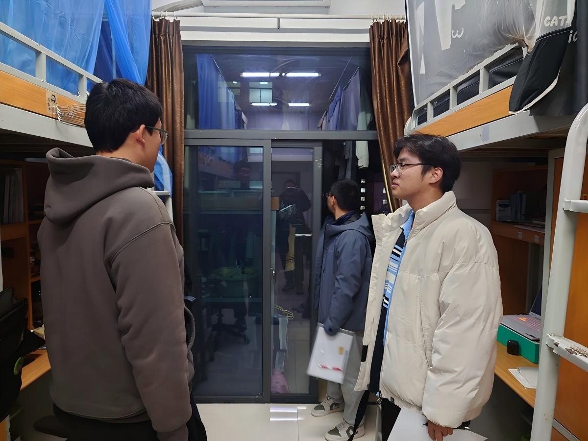 12月22日晚,我校全体学工干部和辅导员走进学生宿舍,开展期末学风督查与安全教育活动,全面排查宿舍安全隐患,引导学生树立良好的学习与生活习惯,共同营造安全、健康、积极向上的成长环境,把学风建设延伸到“一站式”学生社区。
