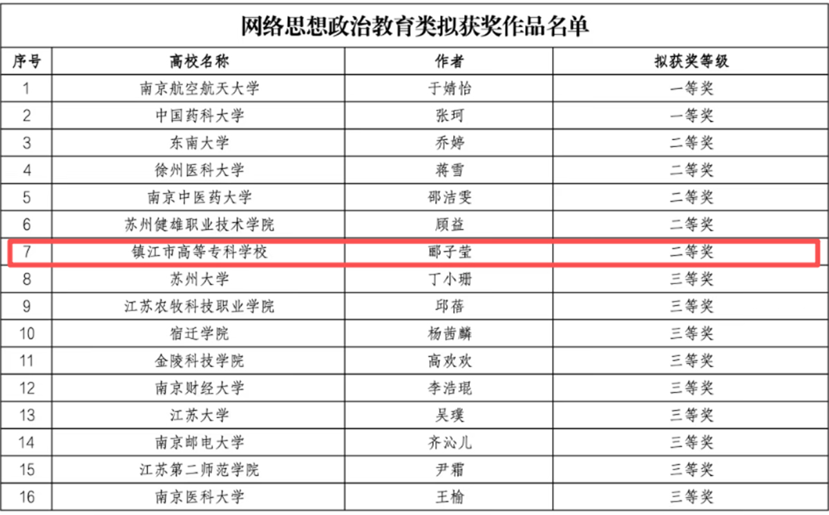 本次“金微课”征集活动由江苏省高校网络思想政治工作中心和江苏高校易班发展中心联合组织开展,旨在深入实施新时代立德树人工程,提升高校网络育人能力,推动网络思想政治教育与时代发展深度融合,活动自2025年10月启动,经材料初筛、资格审核、专家函评、作品政审和终审会评等环节,从全省征集参评的530项作品中,评选出一等奖16项、二等奖33项、三等奖59项。