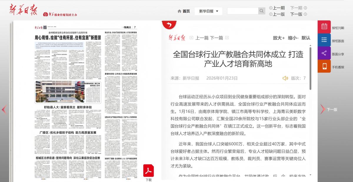 新华日报|全国台球行业产教融合共同体成立 打造产业人才培育新高地 信息来源:宣传部发布时间:26.01.23阅读次数:24158 媒体链接:新华日报:https://xh.xhby.net/pc/layout/202601/23/node_7.html#content_1524353