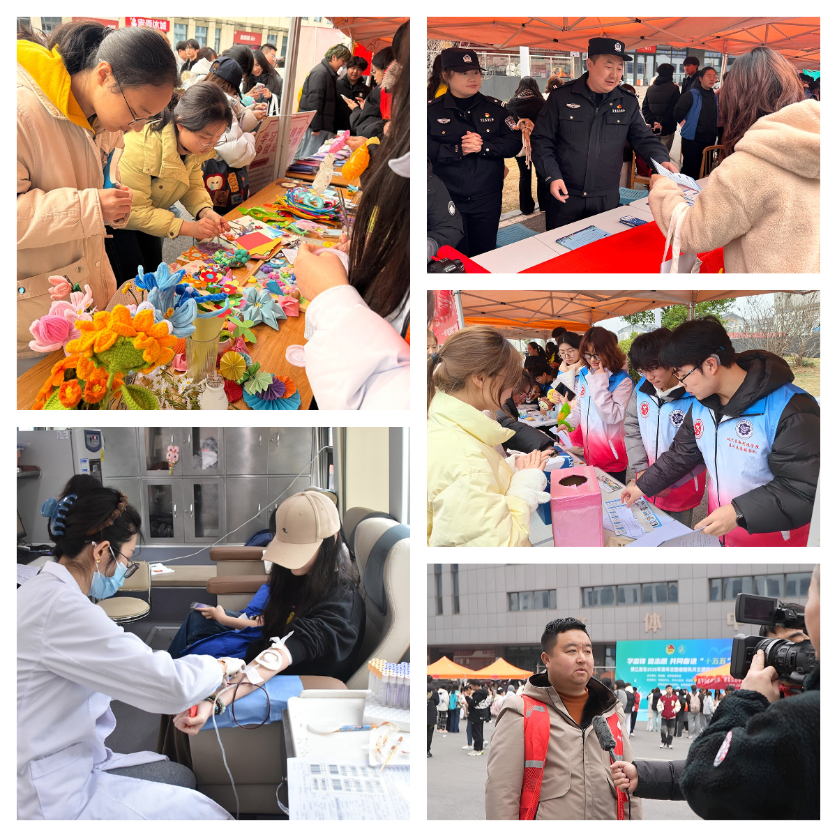 3月5日上午,我校举办“学雷锋 做志愿 共同奋进‘十五五’”2026年青年志愿者服务月主题团日活动。校团委、各学院团总支联合市疾控中心、市中心血站、丹徒区城区派出所、宜城街道社会治理办、宜城街道司法所等单位义务开展反诈宣传、见义勇为法规宣传、健康减重学习体验、证件照拍摄、同伴互助、防艾宣传、无偿献血知识科普等多项志愿服务活动。