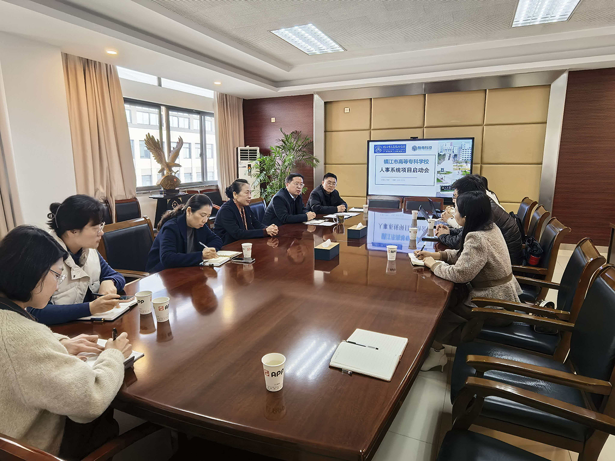 12月10日上午,我校在行政楼525会议室举行人事管理系统建设项目启动会。副校长李冬梅出席会议并讲话。会议由副校长唐红雨主持。学校人事处、图文信息中心主要负责人,项目实施单位领导、项目团队核心成员共同参会。 启动会上,图文信息中心负责人首先就项目整体情况作了介绍。他指出,人事管理系统建设是学校推动治理能力现代化、深化数字化校园转型的关键举措之一。项目由学校与工商银行合作共建,旨在建成一个