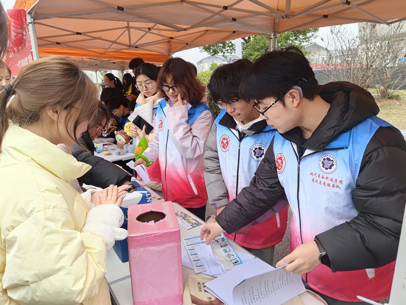 3月5日上午,我校举办“学雷锋 做志愿 共同奋进‘十五五’”2026年青年志愿者服务月主题团日活动。校团委、各学院团总支联合市疾控中心、市中心血站、丹徒区城区派出所、宜城街道社会治理办、宜城街道司法所等单位义务开展反诈宣传、见义勇为法规宣传、健康减重学习体验、证件照拍摄、同伴互助、防艾宣传、无偿献血知识科普等多项志愿服务活动。 校院服务队志愿者们充分发挥专业优势,把理论知识转化为实践能力,学