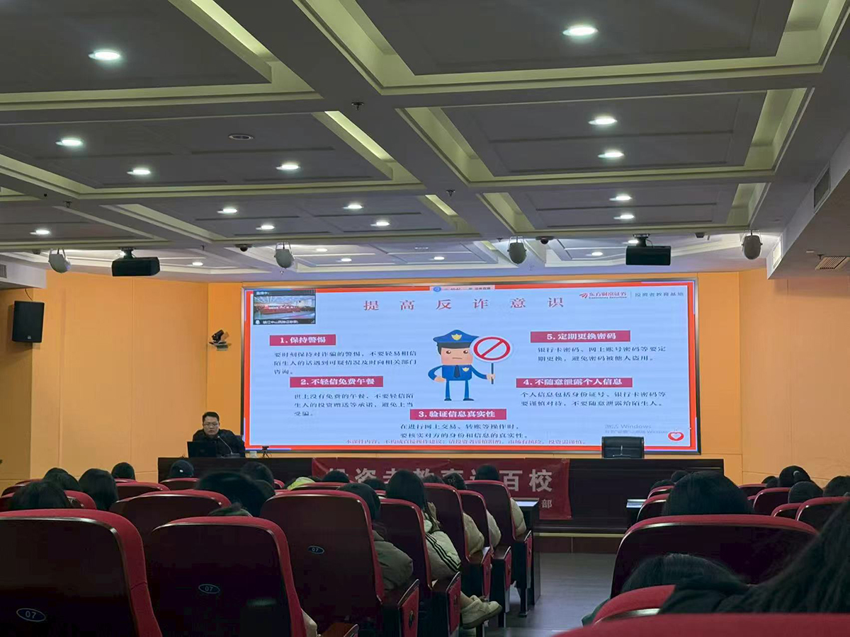 12月15日下午,学院邀请校外金融单位内训师陈亚川走进校园,在会议中心C103会议室开展“识破诈骗迷局 守住安全底线”主题讲座,学院130多名大学生参加活动。 讲座中,陈亚川结合工作实际案例与经验,帮助大学生深入分析年轻人易遭受电信诈骗的原因,介绍了常见的几种诈骗手段,提醒大学生切实提高反诈意识和能力,做到防患于未然,并结合专业特点认真学习金融知识,保护个人权益。 参加活动的大学生积极参与