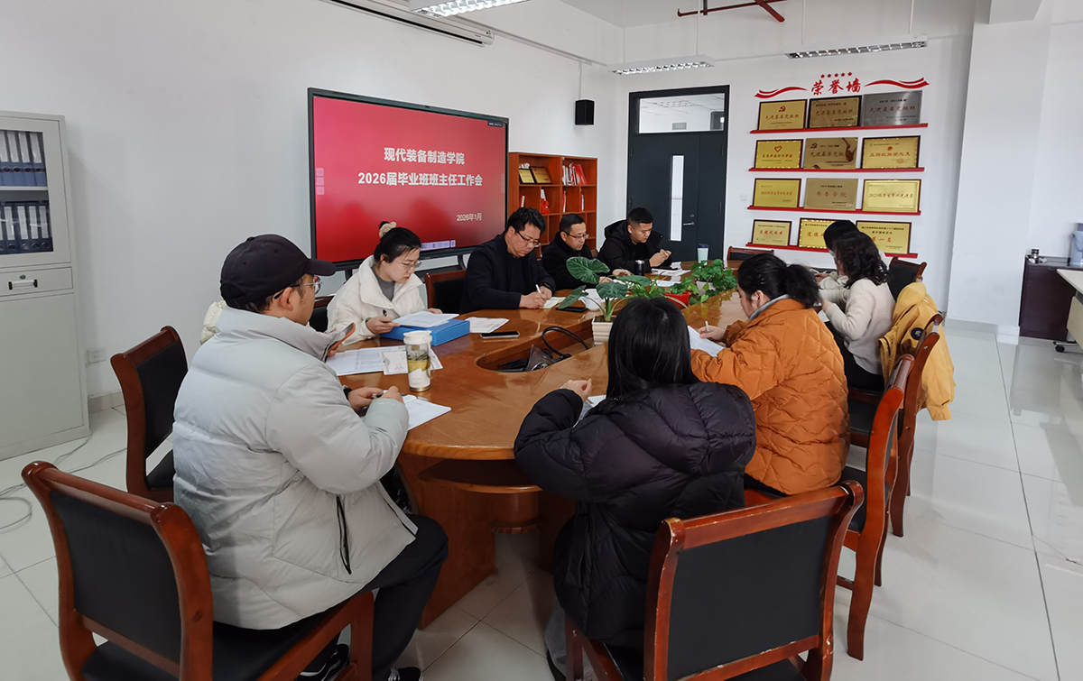 近日,现代装备制造学院召开了2026届毕业班班主任工作会议,学院党总支书记许学军、党总支副书记许辉、副院长赵雳、学院就业专员、2026届毕业班班主任参会。 会上,许学军书记通报了学院2025届学生就业情况,强调了“四不准、三不得”工作要求,解读了《现代装备制造学院2026届毕业生就业工作方案》内容,从摸底学生就业意向、不同就业渠道工作要求、就业工作关键时间节点以及开展多种形式招聘推介会等方面